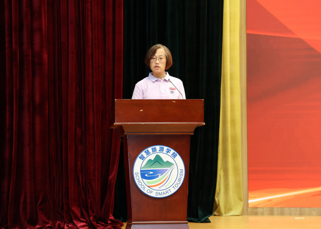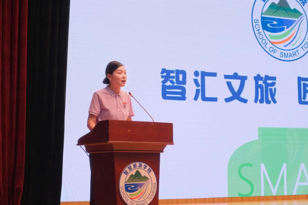 智慧旅游学院党总支书记、执行院长崔悦结合学院文化品牌“智汇文旅,匠铸服务”,向新同学们进一步介绍学院,提出这八个字凝聚着我们对时代的回应、对行业的坚守:以智慧拥抱文旅新浪潮,以匠心守护服务之本真,于精准处见专业,于精细处见功力,于精致处见境界。希望同学们深刻理解并积极践行院系精神,珍惜时光,锤炼自我,成长为能够赋能中国文旅业数字化升级的栋梁之才。
