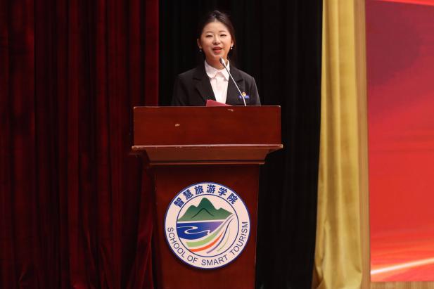 智慧旅游学院学生组织主席团成员诵读《廉洁从学倡议》,“大学,是青春的舞台,是梦想的起点,更是成长的熔炉……”铿锵有力的誓言回荡在报告厅内,不仅是新生们对自身的承诺,更是对未来大学学习生活的郑重表态,展现出新时代青年学子的责任与担当。