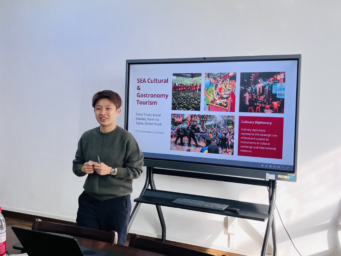 讲座聚焦东南亚旅游发展趋势,围绕文化、饮食、酒水旅游三大板块,深入剖析相关元素在塑造中国与东南亚旅游目的地品牌中的关键作用,并探讨社交媒体对当代旅游决策的影响。薛凯旋以体验式旅游为切入点,结合新加坡等地的实践案例,生动阐释了饮食文化、节庆活动与烹饪体验对旅游产业的赋能价值。同时,他也直面行业在真实体验维系、物价波动等方面面临的现实挑战,指出未来旅游应通过强化文化真实感、推动故事化叙事与产品创新,将地方饮食文化转化为具有全球旅游吸引力的旅游资产,从而提升国际关注度与旅游需求。