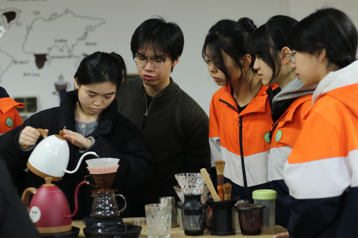 在咖啡实训室里,浓郁的咖啡香气扑面而来。咖啡社团成员从咖啡豆甄选、研磨粗细讲到萃取时间、奶泡打发,循序渐进地传授咖啡制作的核心技能。同学们体验实操,亲手研磨咖啡豆、操作咖啡机,尝试制作经典咖啡饮品,在反复调试中感受咖啡工艺的精妙,体验动手创作的乐趣。