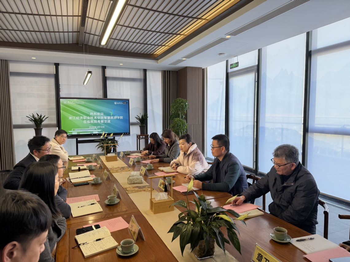为全面掌握浙江省旅游产业和行业人才需求,进一步提升专业与区域产业匹配度,3月13日下午,我院党总支书记、执行院长崔悦率队赴湖州职业技术学院旅游管理学院开展专业市场调研交流。旅游管理学院院长朱智、副院长熊友平、张丽娜及相关专业负责人热情接待了我院一行。